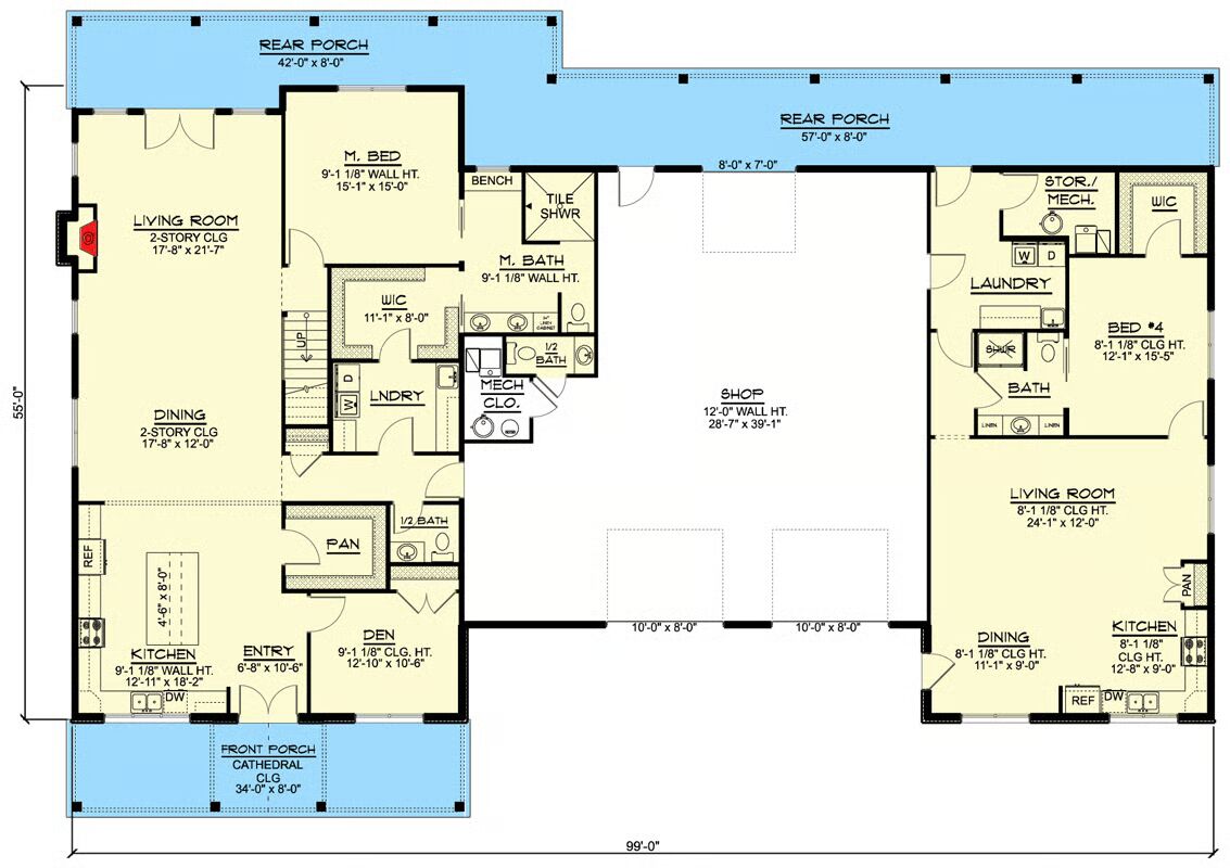 Welcome to the gallery of photos for the Multi-Generational Barndo-Style House with Massive Connecting Garage Shop – 4314 Sq Ft. The floor plans are shown below: