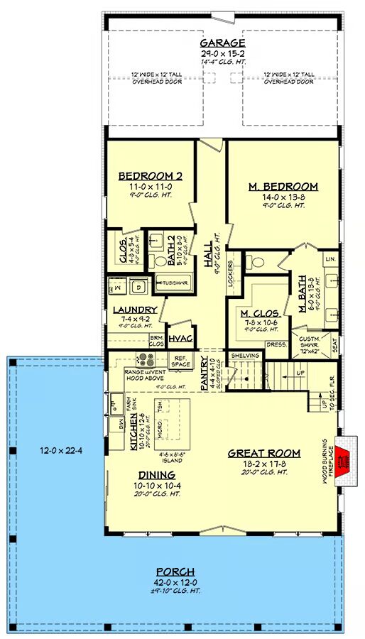 A rear hallway leads directly to the side-entry drive-through garage, complete with oversized 12′ x 12′ doors—perfect for RVs, trailers, or oversized vehicles.