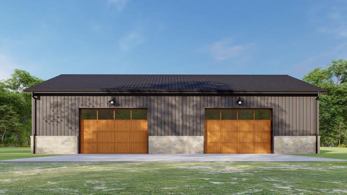 Designed with flexibility in mind, this plan accommodates construction with a Pre-Engineered Metal Building (PEMB)—a popular choice for barndominiums thanks to its efficiency, durability, and quicker installation compared to traditional framing.