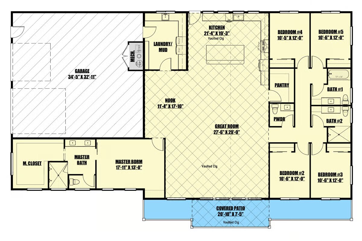 Welcome to the gallery of photos for the ADA Accessible Barndominium Style House with RV Garage Bay. The floor plan is shown below: