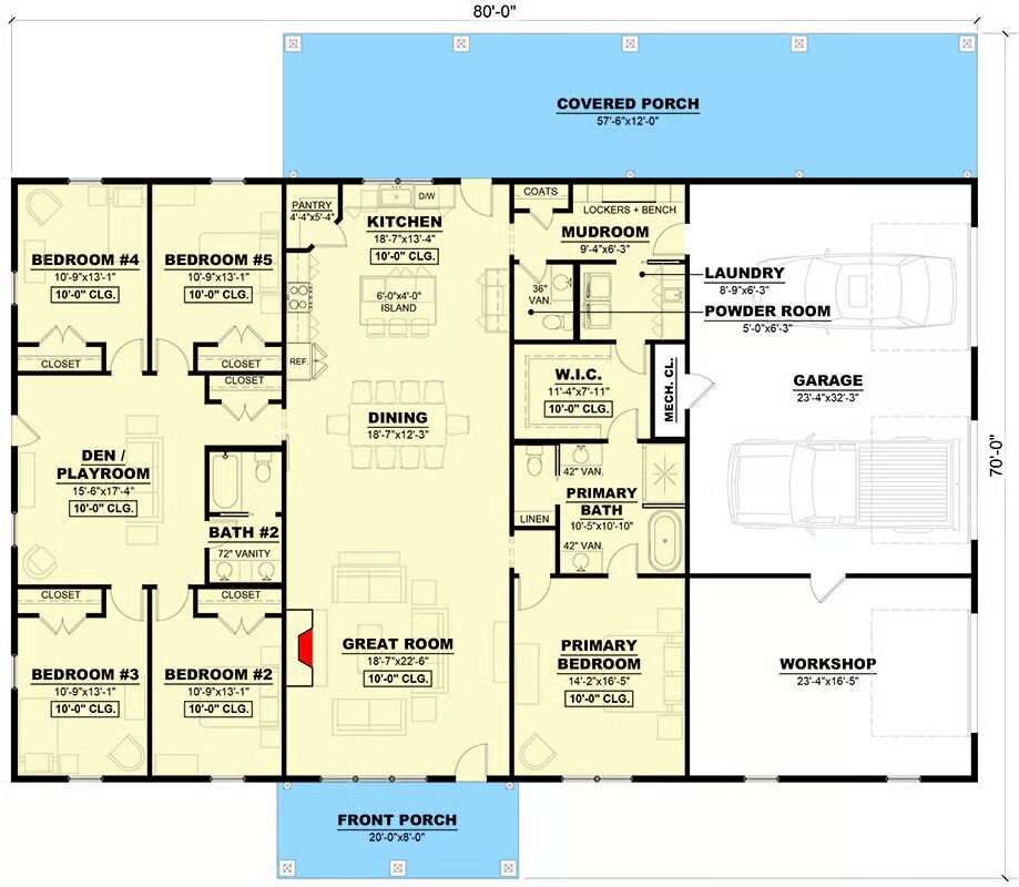 Welcome to the gallery of photos for the Barndominium-Style House with Den and Workshop – 2800 Sq Ft. The floor plan is shown below:
