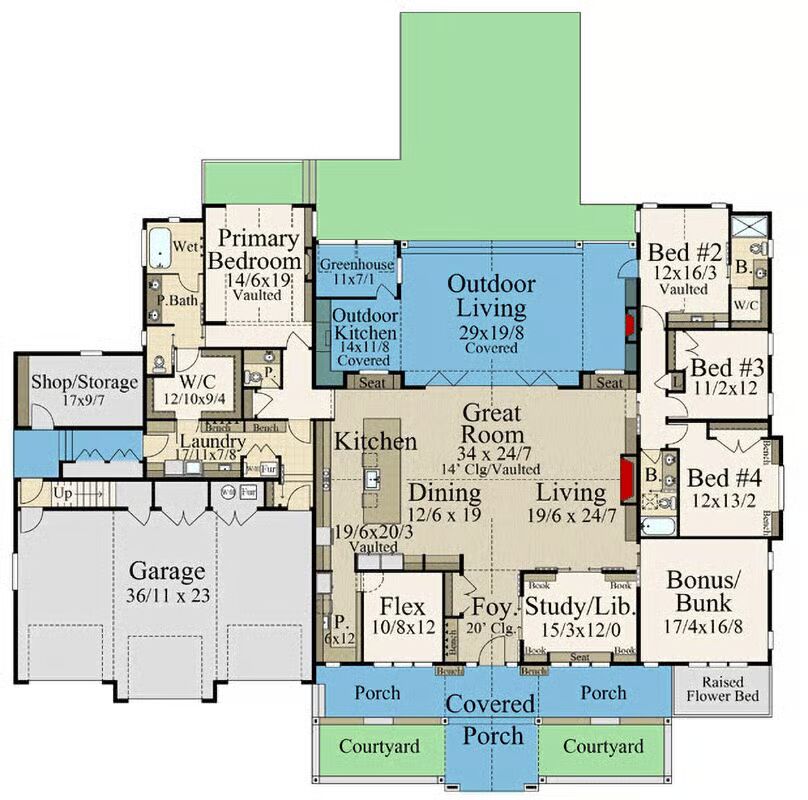 Three additional bedrooms are thoughtfully positioned on the opposite side of the home for added privacy, along with a flexible bonus or bunk room ideal for guests or recreation.