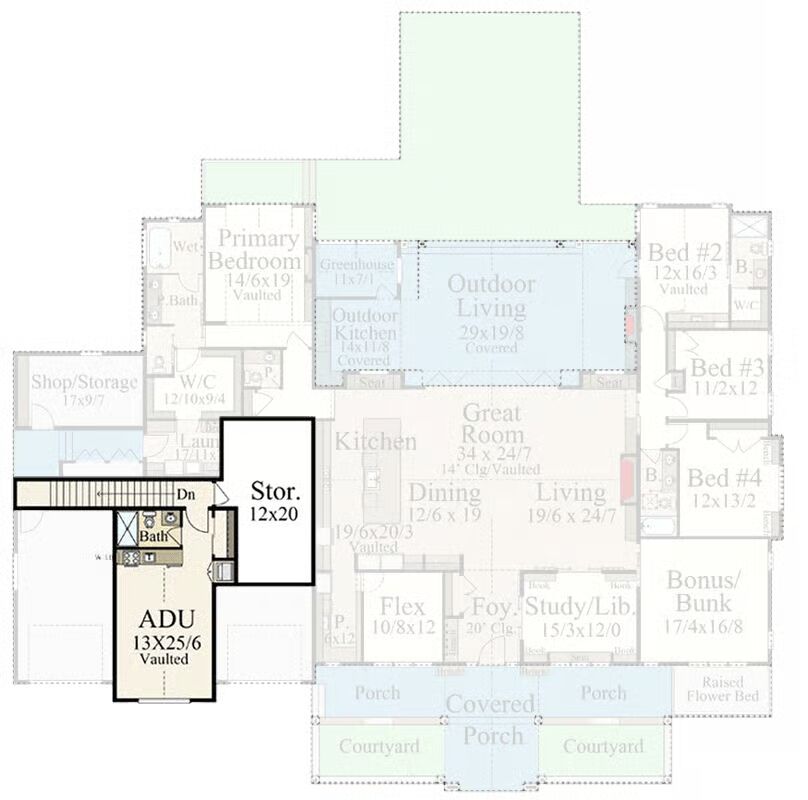 Welcome to the gallery of photos for the Grand Barndominium House with ADU and Outdoor Living. The floor plans are shown below: