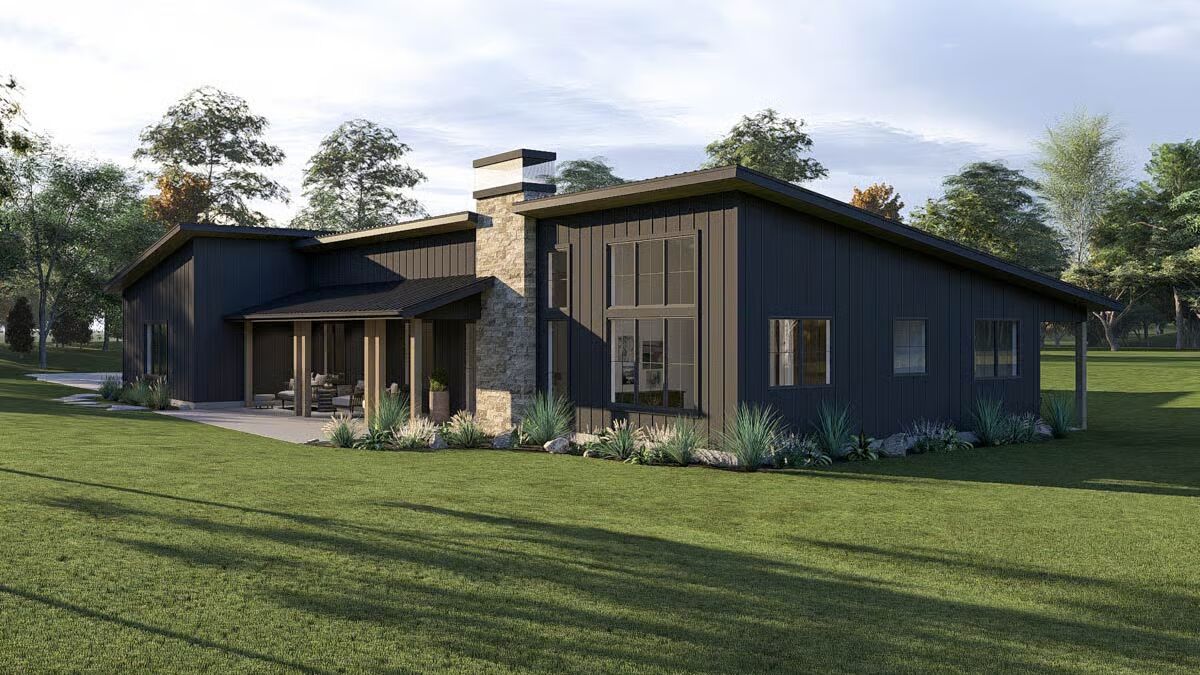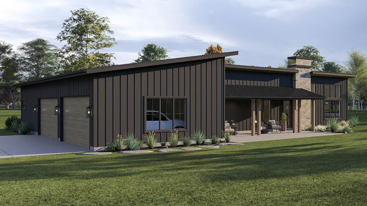 This stunning modern Barndominium-style home offers 2,559 square feet of luxurious living space, featuring 5 bedrooms, 3.5 baths, and an impressive 1,051 sq. ft. 4-car garage — all wrapped in a sleek, contemporary design that blends rustic charm with modern sophistication.