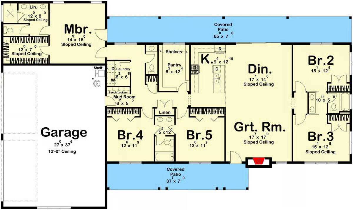 Welcome to the gallery of photos for the Modern Barndominium House with Split Layout and 4-Car Garage. The floor plan is shown below: