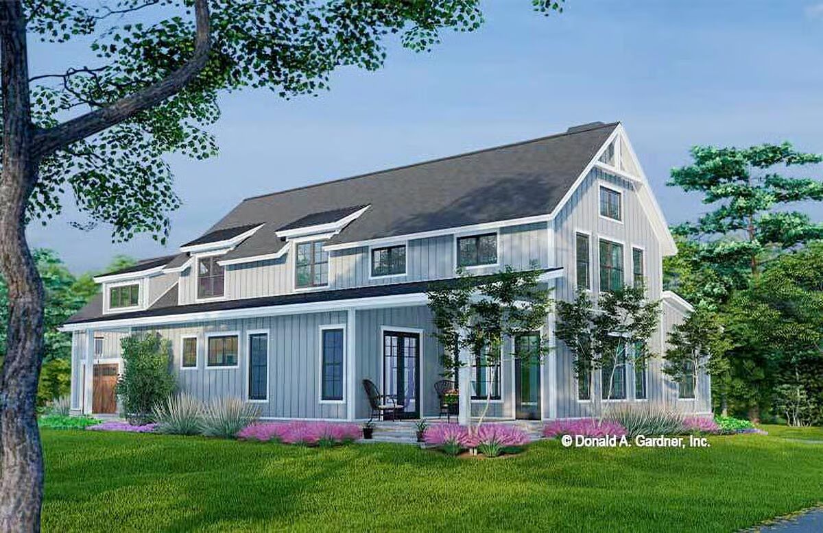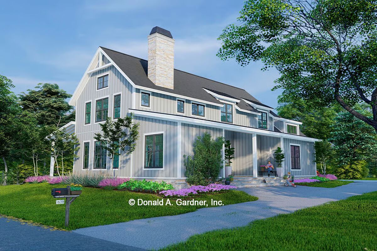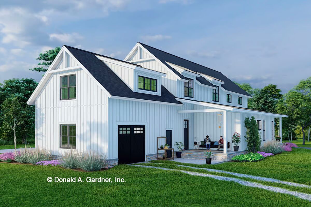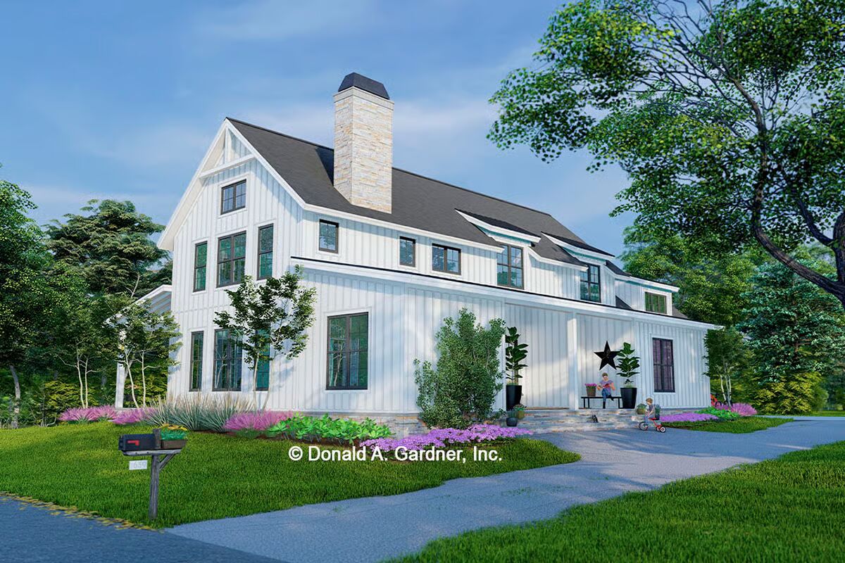 Buy This PlanThe striking white vertical siding and classic black windows make this a pristine example of a modern barndominium-style home.A modern farmhouse aesthetic shines through in this home’s clean lines, vertical siding, and welcoming front porch.A broad front porch and charming landscape beds highlight the inviting and comfortable feel of this striking modern farmhouse.This view captures the clean architectural symmetry and classic white facade of the house, creating a timeless and picturesque scene.This sleek white barndominium-style home features a classic gabled roof and a two-car garage with bold black doors.With its soaring chimney and sophisticated gray siding, this home exudes elegance while maintaining its barndominium-style character.This stylish gray barndominium-style house offers a seamless blend of contemporary design and rustic charm, complete with a long, inviting porch.A beautiful blue-gray exterior and contrasting wood garage door give this home a unique and captivating modern farmhouse feel.The dual garage doors in rich wood tones add a warm, natural contrast to the sleek gray and black palette of this stunning house.