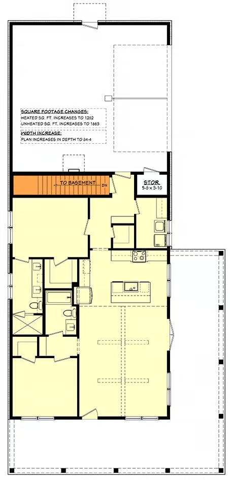 Welcome to the gallery of photos for the Barndominium-Style Farmhouse with Wrap Around Porch and Great Room – 1260 Sq Ft. The floor plans are shown below: