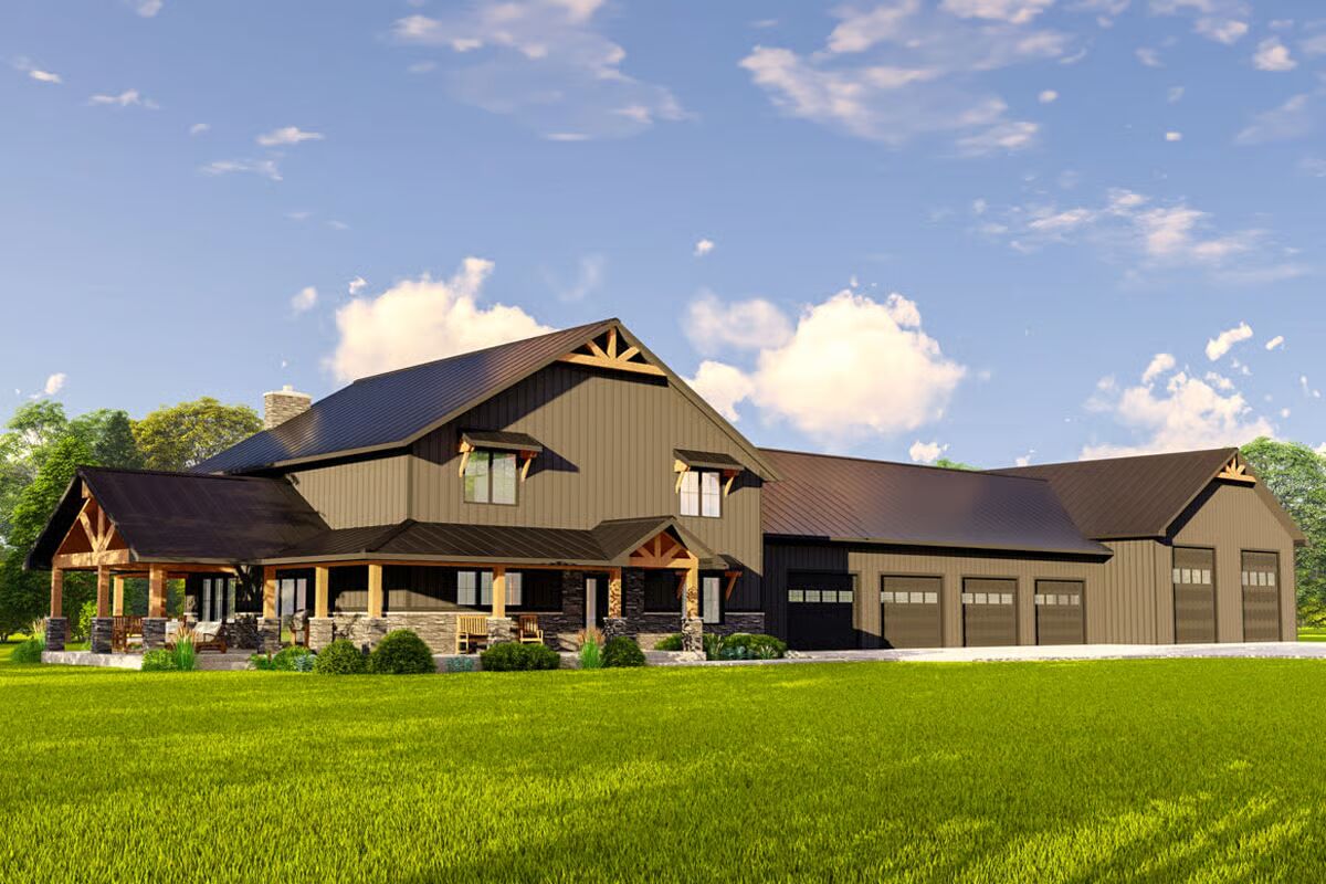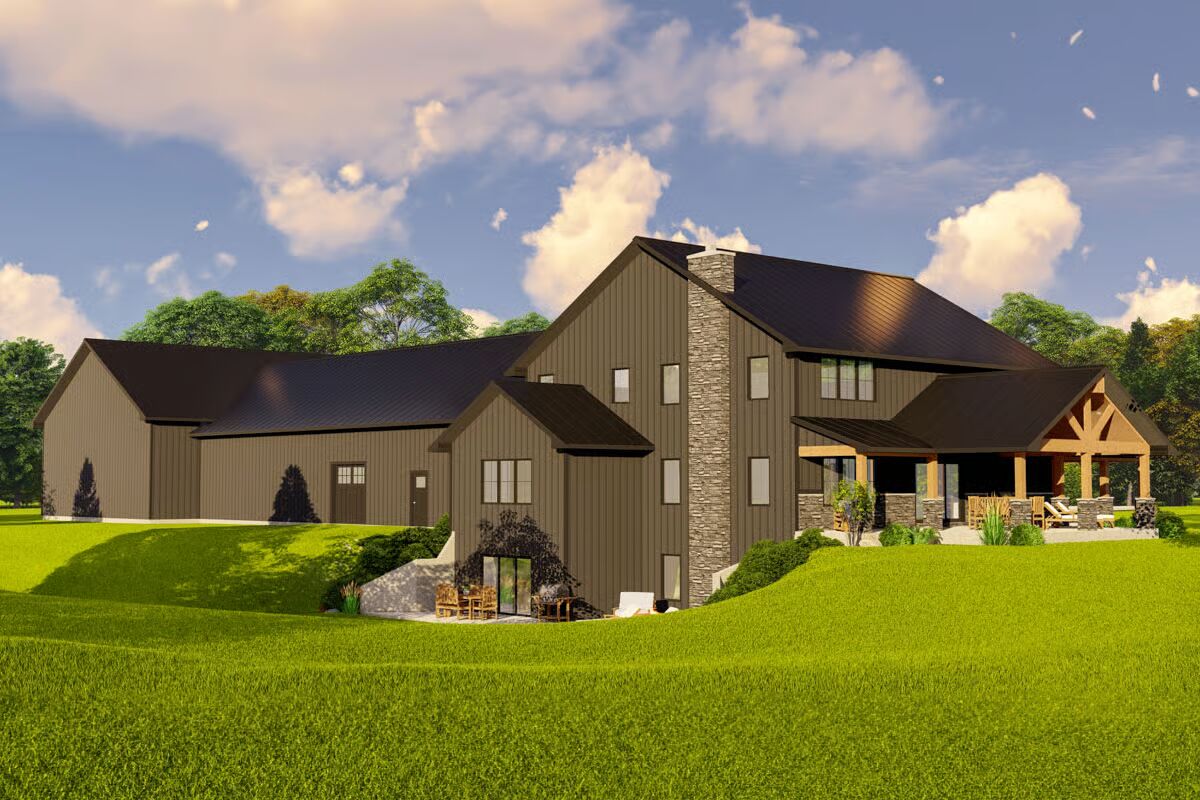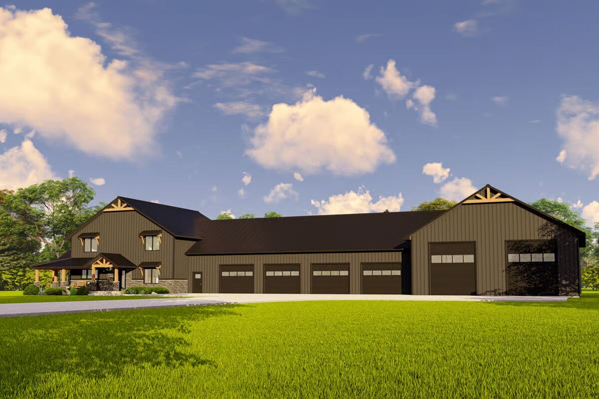 This impressive barndominium-style home delivers 3,473 sq. ft. of heated living space, offering 3 to 4 bedrooms, 2 full baths, and 2 half baths, with the option to expand into a finished lower level for even more versatility.