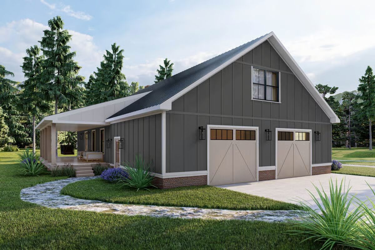 An oversized 858 sq. ft. 2-car garage provides ample room for vehicles, storage, or a workshop, while the thoughtfully designed floor plan combines comfort, versatility, and modern barn-inspired charm.