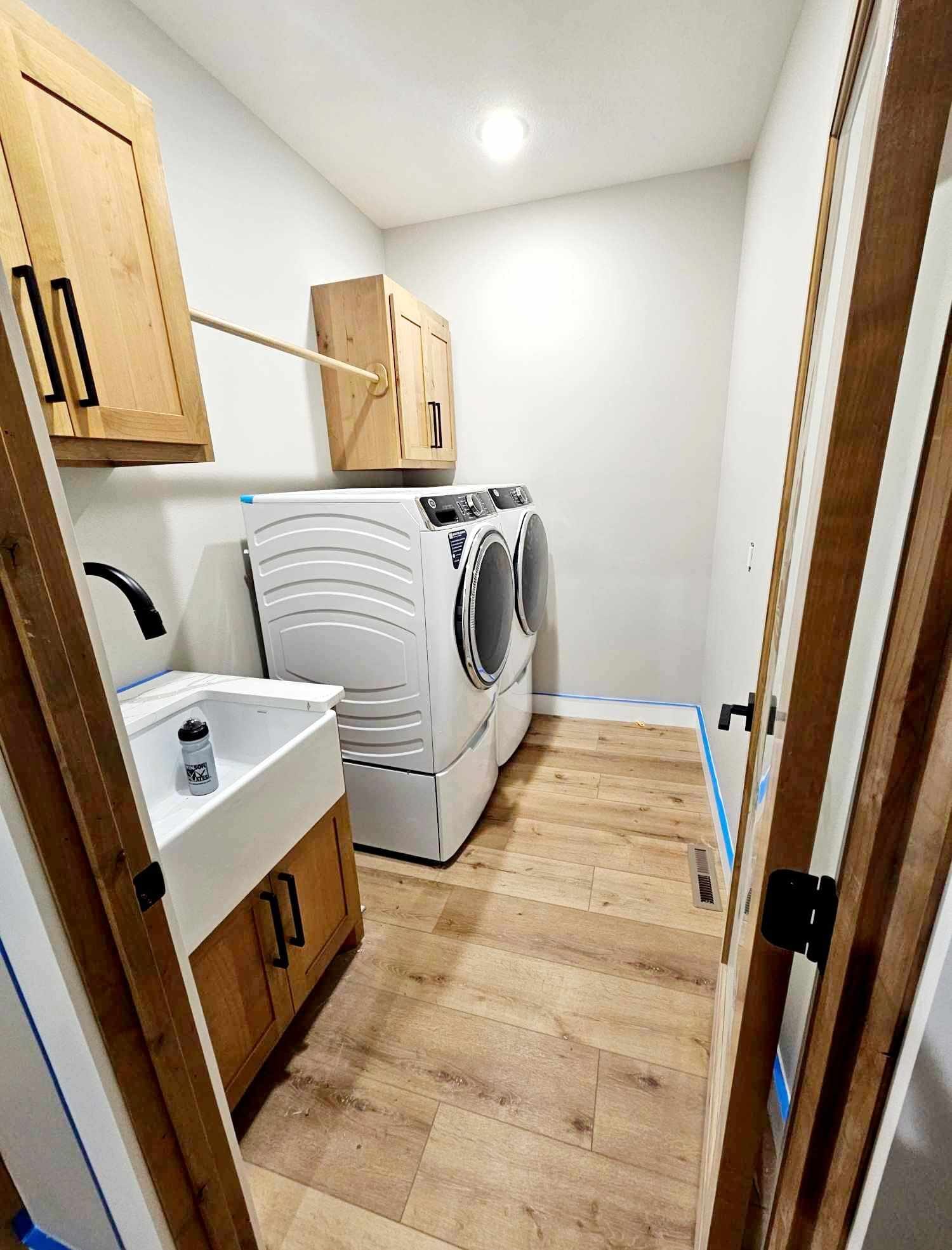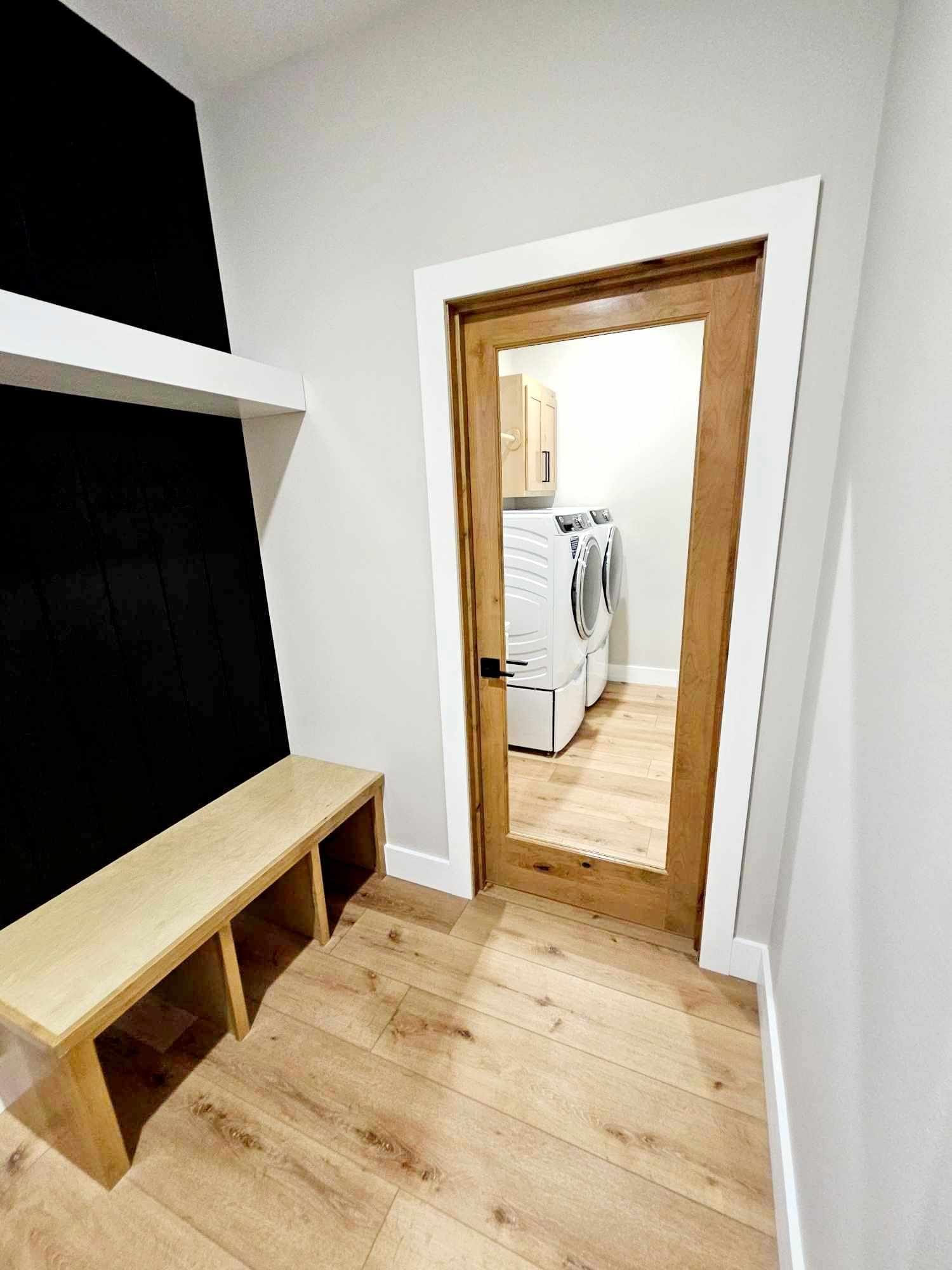 The laundry room and mudroom are separated by a door.