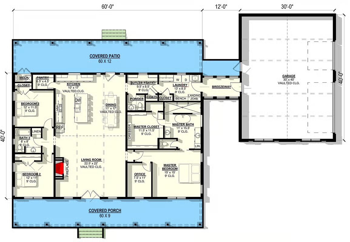 Welcome to the gallery of photos for the Modern Farmhouse Barndominium House with Split Bedrooms and Detached Garage. The floor plan is shown below: