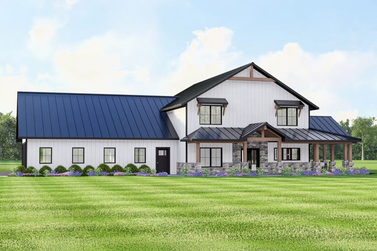 Welcome to this stunning Barndominium-style residence, offering 2,783 sq. ft. of beautifully designed living space with 3 bedrooms, 2 full baths, 2 half baths, and a 3-car side-entry garage.